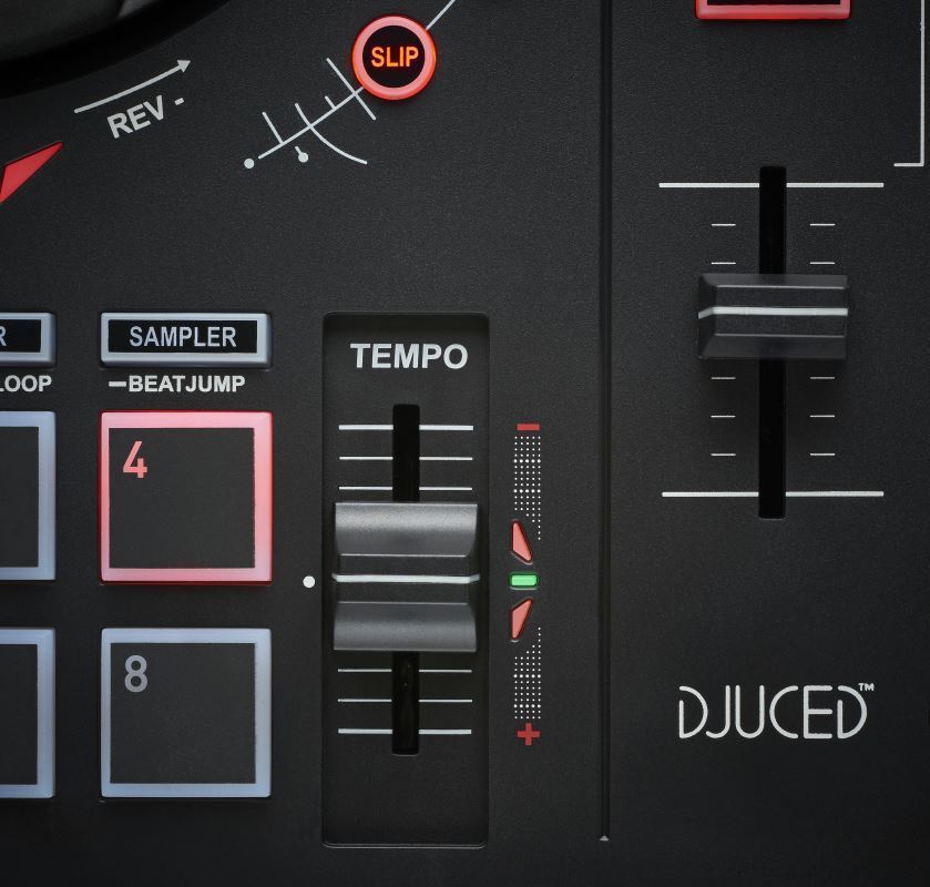 - 8 padů: aktivace 8 režimů (hot-cue, roll, slicer, sampler, toneplay a další)