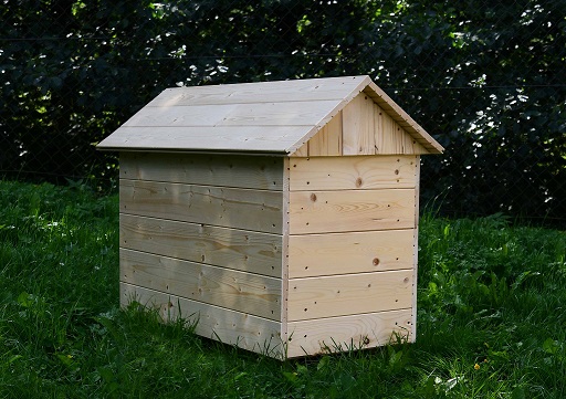 Psí bouda z masivního smrkového dřeva. Rozměry: 90x45x55 cm (š x v x hl)