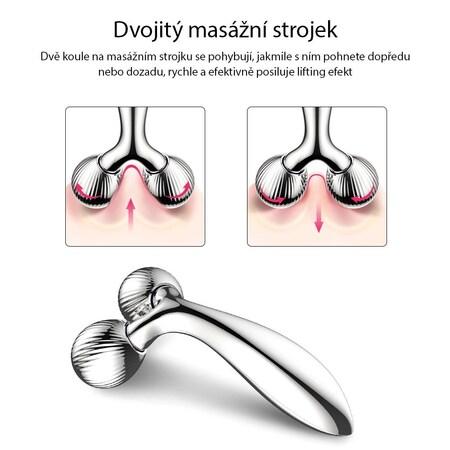 Masážní přístroj - válečková masáž, pro omlazení pleti, masáž a relaxaci, omyvatelný povrch, dva 360° masážní válečky, ergonomický design, lehké a přenosné provedení