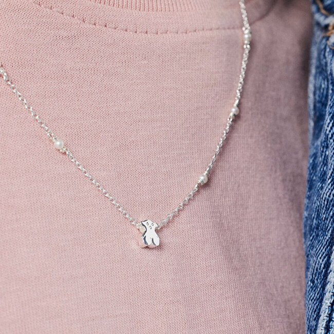 Tous Stříbrný náhrdelník s perlami a medvídkem Super Power 812402560
