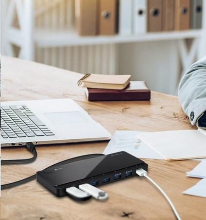 USB rozbočovač UH700 je skvělou volbou pro rozšíření USB portů počítače pro přenos dat, když potřebujete současně připojit USB disk, USB myš, tiskárnu nebo jiná zařízení. Port USB 3.0 umožňuje přenosovou rychlost až 5 Gbit/s, 10 rychlejší než USB 2.0.