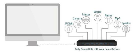 Output Interface 7 USB 3.0 Standard A, 2 2.4A Charging Ports