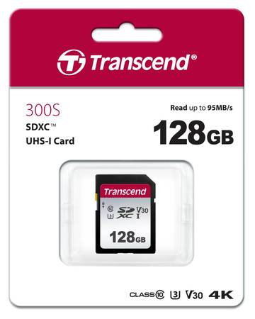 Transcend 128GB SDXC 300S (Class 10) UHS-I U1 V10 paměťová karta, 100 MB/s R, 25 MB/s W