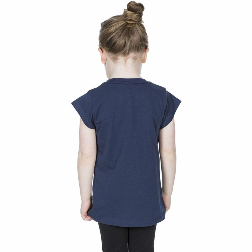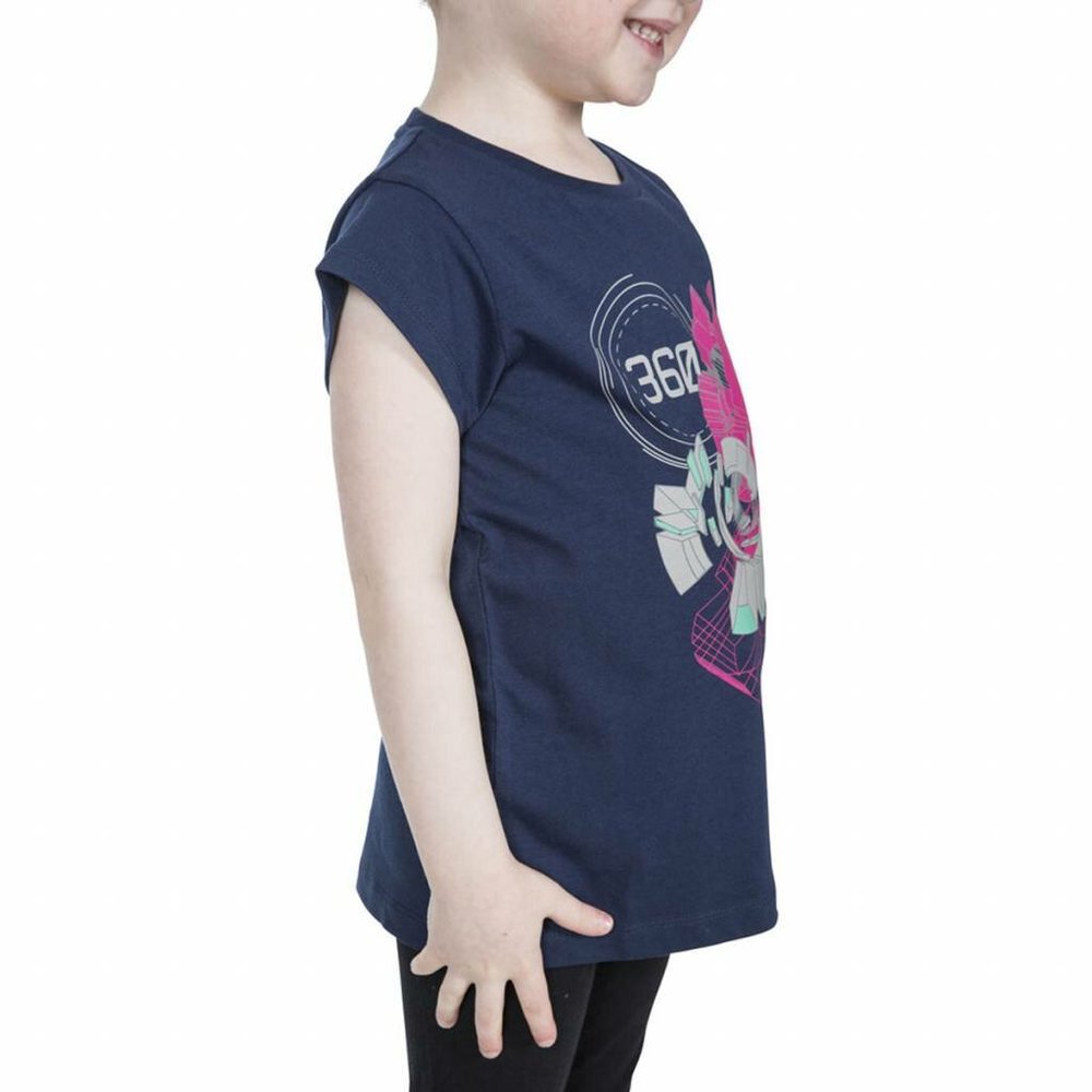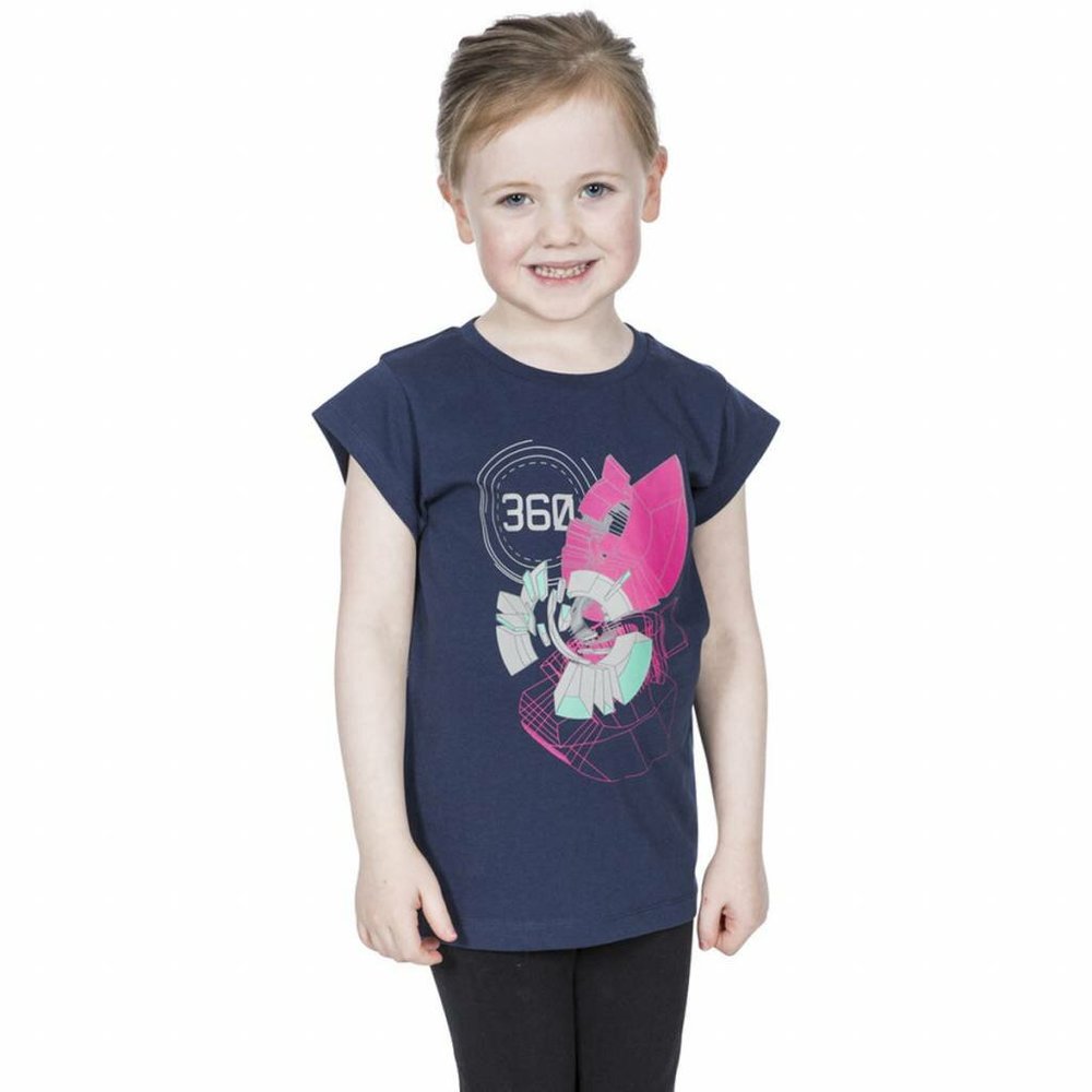 Dětské triko Trespass Leia v modré barvě s potiskem, krátkým rukávem a kulatým výstřihem z bavlněného materiálu