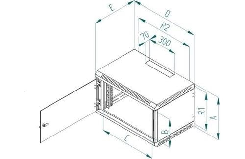 - 19“ jednodílný nástěnný rozvaděč s krytím IP20.
