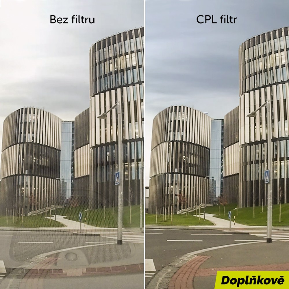 Magnetické CPL filtry zbaví video nechtěných odlesků, takže bude ještě ostřejší a plné detailů. Typicky zabrání odleskům palubní desky ve skle.