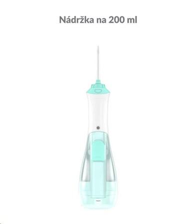 Elektrická ústní sprcha – nádržka 200 ml, 360° otočná hlavice, výdrž 14 dní na jedno nabití, USB kabel, 3 režimy, časovač, funkce Paměť, kompaktní design, barva: bílá/zelená