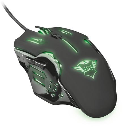 Trust GXT 108 Rava; Optická herní myš s citlivostí až 2000 DPI , šesti tlačítky a skvělým ergonomickým tvarováním s pogumovaným povrchem se ve vašich rukou stane perfektní zbraní ve všech hrách. M...