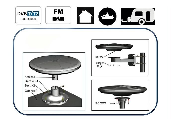 Aktivní venkovní anténa pro příjem FM/VHF/UHF. Digitální pozemní příjem. Jedna z mála se 100% Omni-příjmem. Optimální příjem, bez ohledu na to, jak karavan nebo loď otočí.