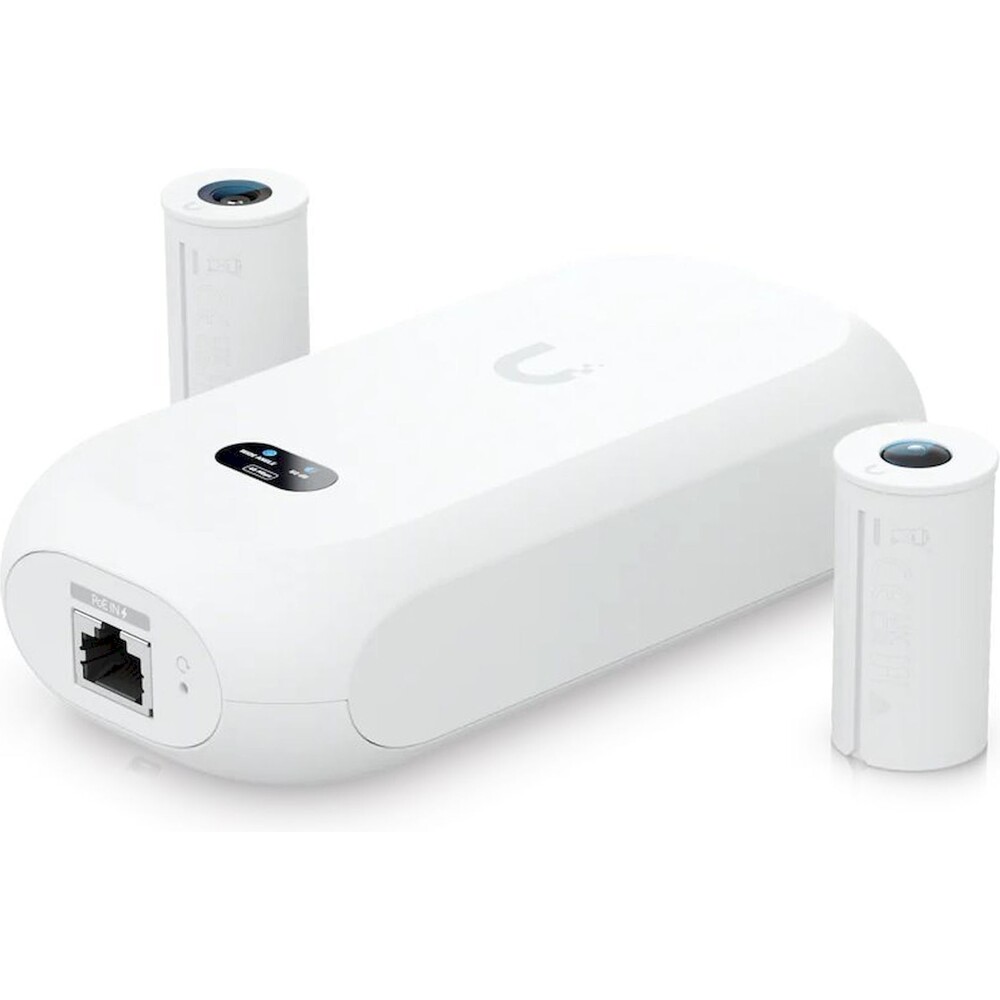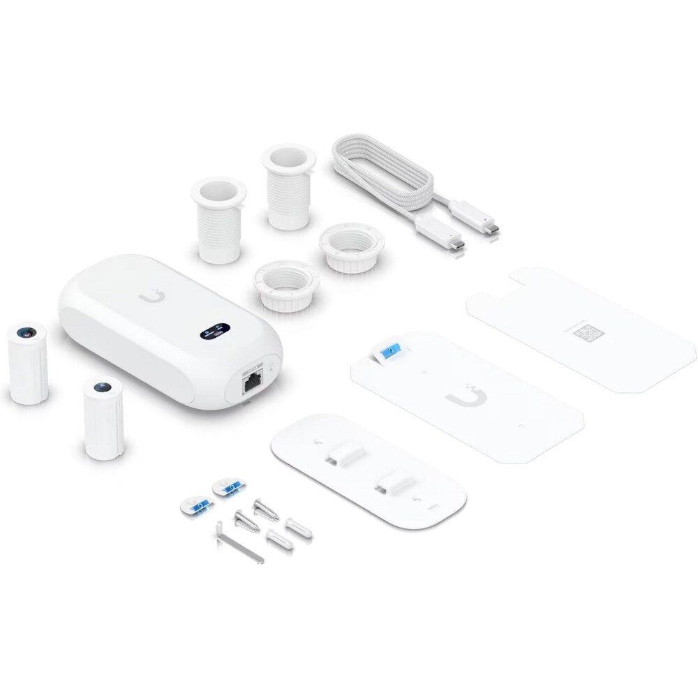 UniFi Protect UVC AI Theta je speciální kamerová jednotka (hub) s ethernetovým portem, informačním displejem a dvěmi USB-C porty pro připojení kamery na vzdálenost až 30m (v balení naleznete 1m propojovací kabel) a audio mikrofonu/reproduktoru, který není součástí balení. V balení se nachází 2 kamery s rozdílnými vlastnostmi a je možné zapojit pouze jednu z nich.