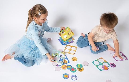 Hra obsahuje 24 velkých kulatých žetonů a šest hracích desek. V balení naleznete rady a tipy pro rodiče s několika dalšími herními variantami.