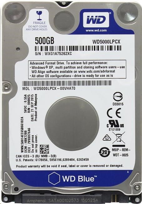 WD HDD Blue 2.5" 500GB - 7200rpm/SATA-III/128MB