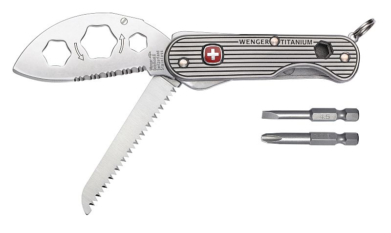 Kapesní nůž Wenger Titanium 2 je speciální titanový horolezecký nůž s ozubeným širokým ostřím.