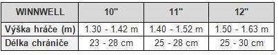 Při výběru chráničů ramen se řídíme výškou postavy. Určující parametr může být také obvod hrudníku. Naměřené míry lze porovnat s velikostní tabulkou. Vždy je ideální, aby Vaše míry byly přibližně uprostřed uváděného rozmezí. Špatně zvolená velikost může výrazně snižovat bezpečnost hráče (nedostatečné krytí u menších vest). Špatnou pohyblivost, kdy se vesta „přetlačuje“ s kalhotami a leze moc ke krku (velká vesta) a zároveň nechrání ta místa, která by měla.