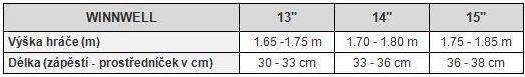 Obecným pravidlem u výběru rukavic je výška postavy, podle které lze zkušeným okem odhadnout přibližnou velikost. Další možností je přeměření ruky hráče (a s tím troška matematiky). Ruku měříme od zápěstí po konec prostředníčku. Naměřenou hodnotu vynásobíme dvěma, pokud jsou rukavice označené pouze v palcích, je potřeba naměřenou hodnotu přévést na palce (1 palec = 2,54 cm). Příklad: rozměr zápěstí – prostředníček = 19 cm x 2 = 38 cm! Převedené centimetry na palce 38 ÷ 2,54 = 15"! :) Podle přiložených tabulek snadno dosadíme a zjistíme, že potřebujeme velikost 15“ – 38 cm! Opět ale tyto dvě možnosti slouží pouze k usnadnění výběru. Nelze se podle nich 100% řídit. Vždy je lepší věci vyzkoušet osobně!