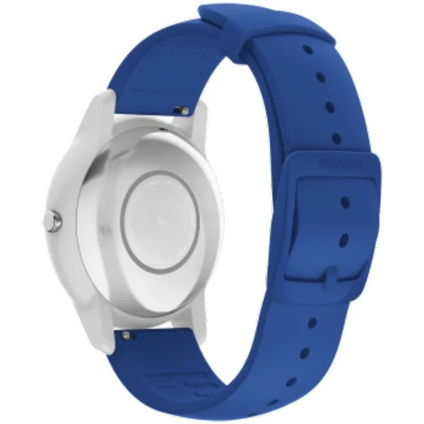 Na zadní straně pouzdra jsou dvě elektrody. Když stisknutím tlačítka aktivujete záznam a položíte opačnou ruku na prstencovou elektrodu hodinek, uzavře se smyčka, která umožňuje Move EKG zaznamenat elektrickou aktivitu vašeho srdce.