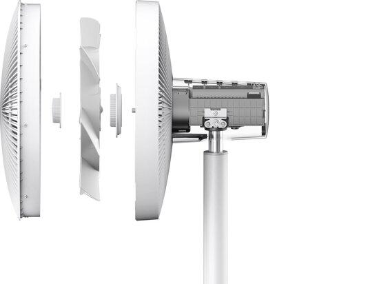 Chytrý ventilátor má tenčí elegantní design a je výškově nastavitelný (625–1 000 mm). Ventilátor lze použít i na stůl nebo jako stojan na podlahu. Široká oscilace až 140° a až 39° náklon hlavy pro rozptyl vzduchu do celé oblasti. Chytrý ventilátor lze ovládat i přes mobilní aplikaci, kde je až 100 režimů rychlosti ventilátoru.