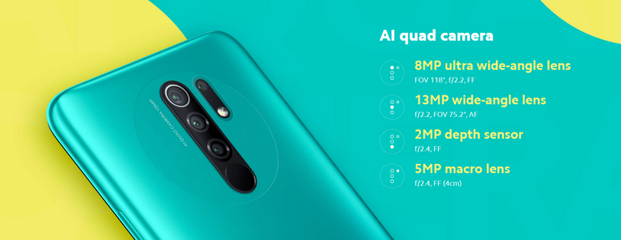Unikátní kruhový design kolem fotoaparátu Redmi 9 vytváří dojem rovnováhy a vytříbené elegance. Zadní strana se vyznačuje texturovaným designem, který zabraňuje tvorbě otisků prstů a pomáhá udržovat telefon neustále jako nový. Jedinečný barevný design pro jedinečný vzhled.