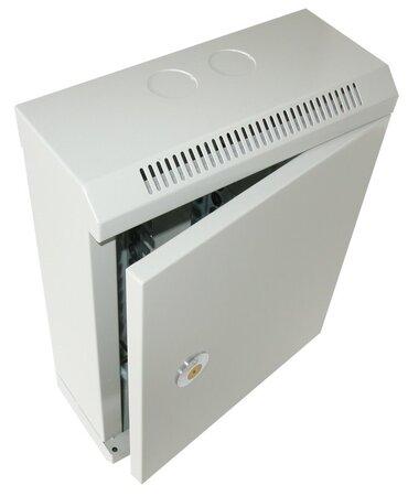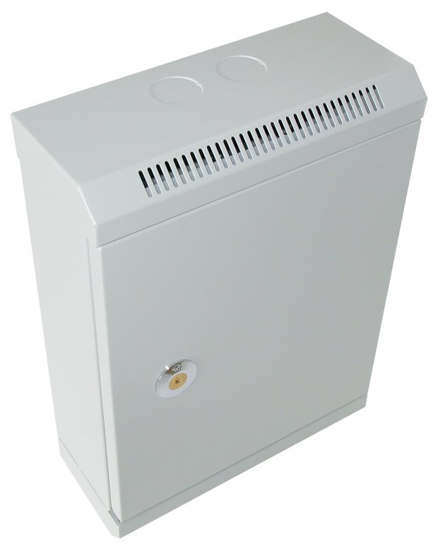 Kovový rozvaděč pro vnitřní instalace na zeď. Pro aktivní prvky a jiné. Rozvaděč je opatřen zámkem a ventilačními otvory.