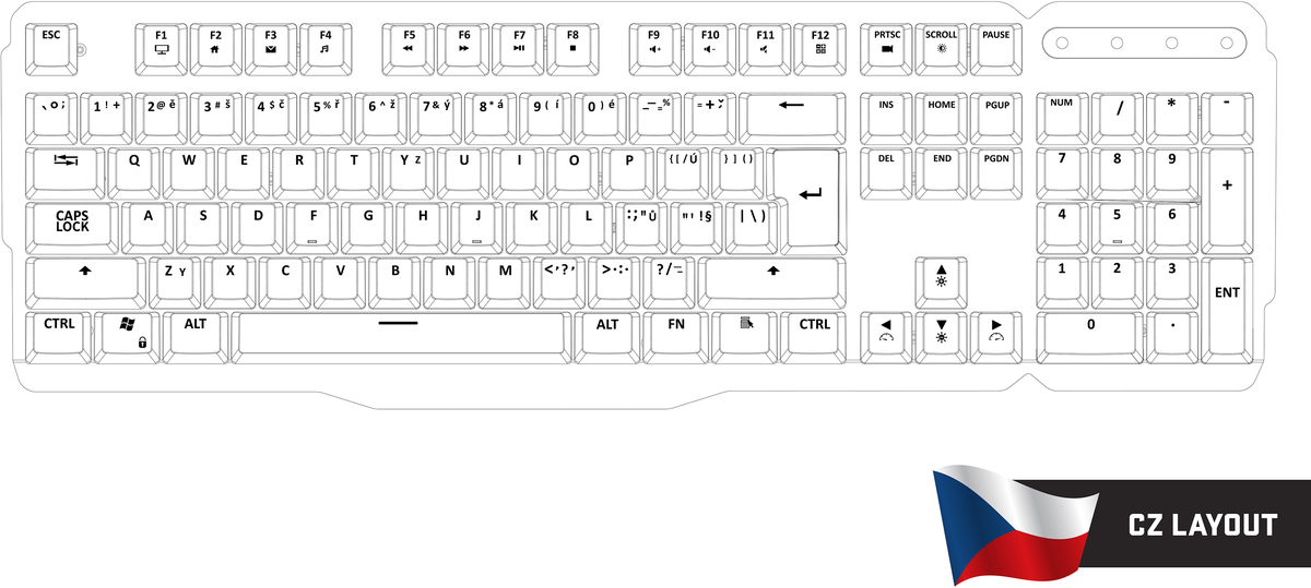 - Funkce individuálního podsvícení umožňuje uživateli nastavit osvícení jednotlivých kláves dle vlastní potřeby