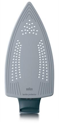 * textilní protektor pro ochranu choulostivých látek a proti vzniku lesklých skvrn - jednoduše se nacvakne bez nutnosti snižovat teplotu, tím se zároveň využije maximální parní výkon žehličky